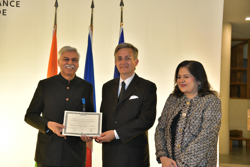 The Ambassador of France to India, H.E. Mr Thierry Mathou, today conferred the insignia of Chevalier de l’Ordre national du Mérite (Knight of the National Order of Merit) on Mr Sunil Kant Munjal, Chairman of Hero Enterprise and Founder of the Serendipity Arts Foundation.